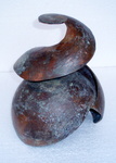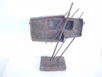 2002Dit beeld brengt op demonstratieve wijze een evenwicht tot uitdrukking. De twee helften houden elkaar in evenwicht. Verwijdert men één van de twee valt de ander om. In dit beeld een stukje mechanica, in het leven misschien twee verwante zielen.